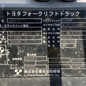Thông số xe nâng điện TOYOTA 8FBH15 8FB18-28874: